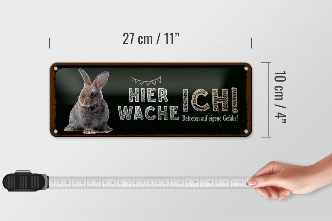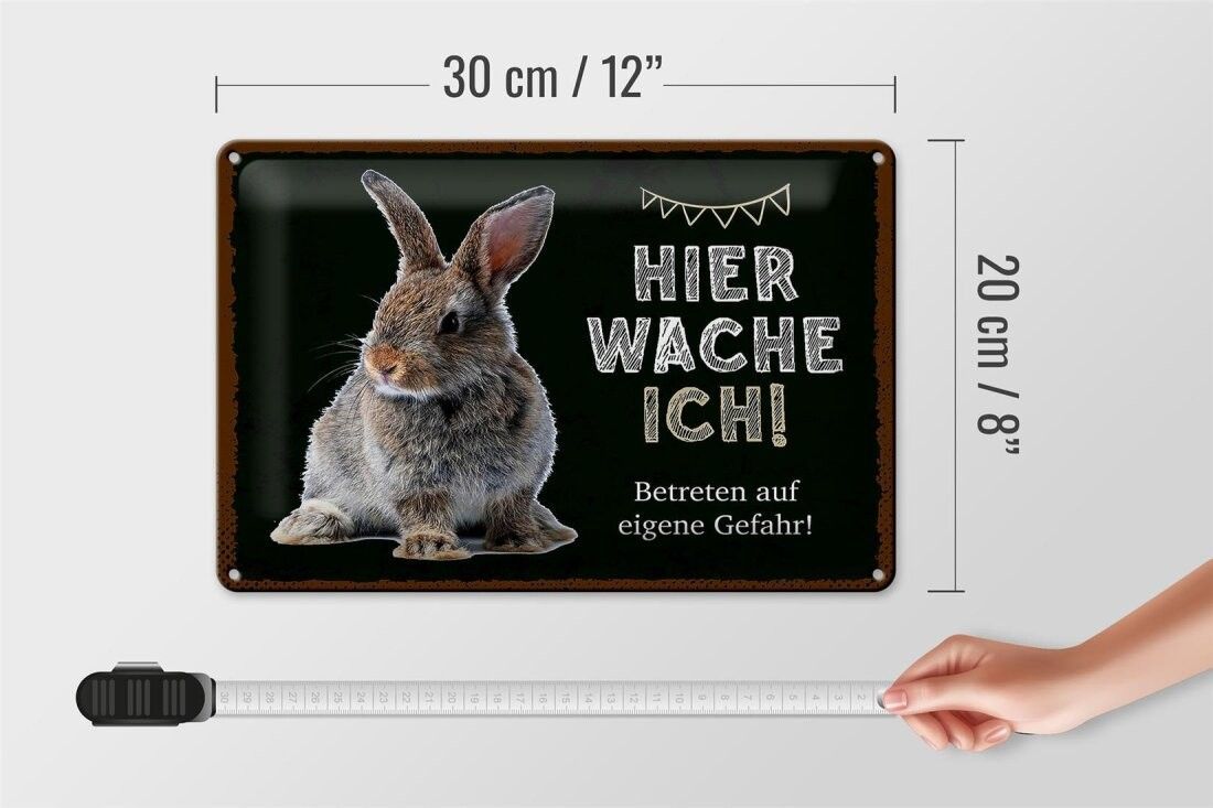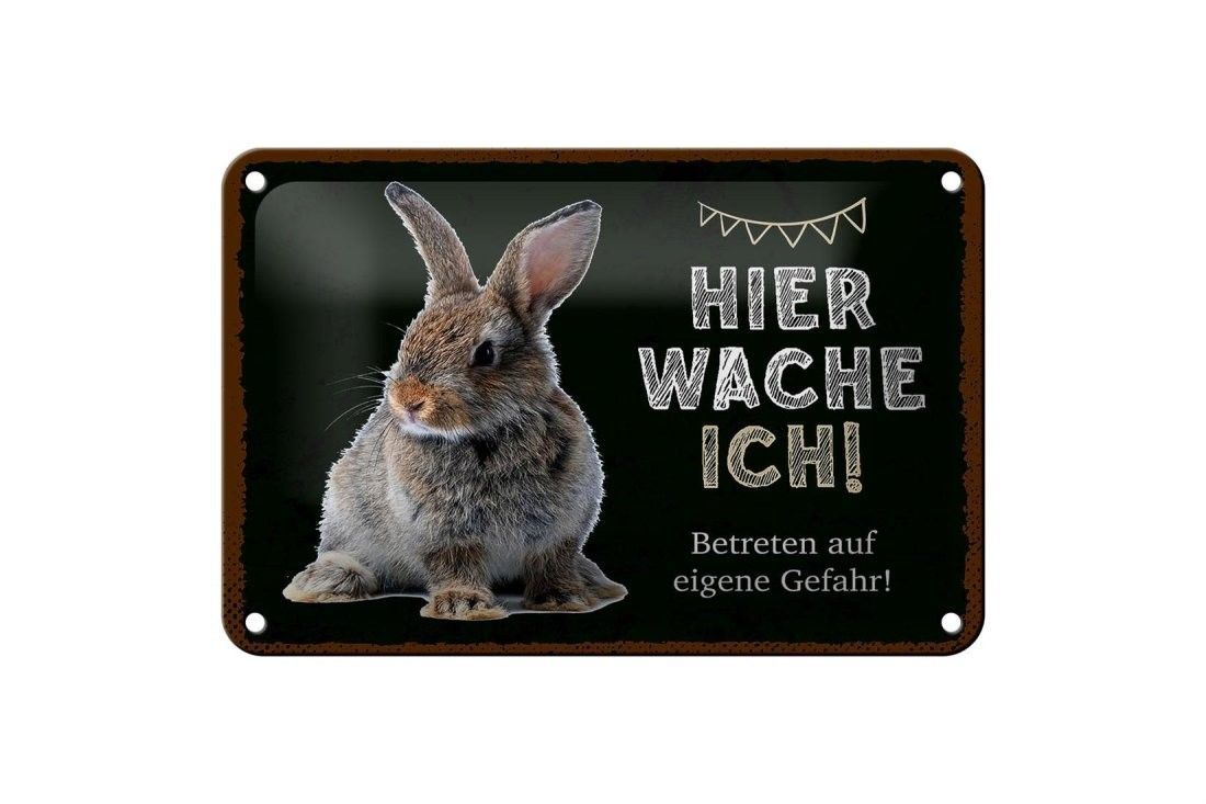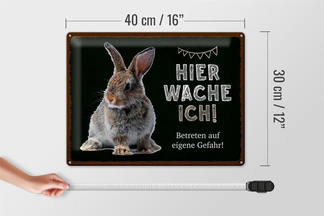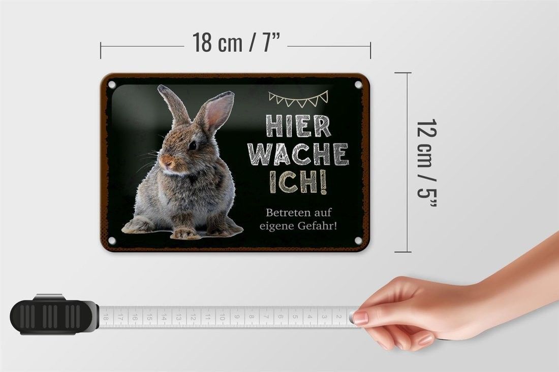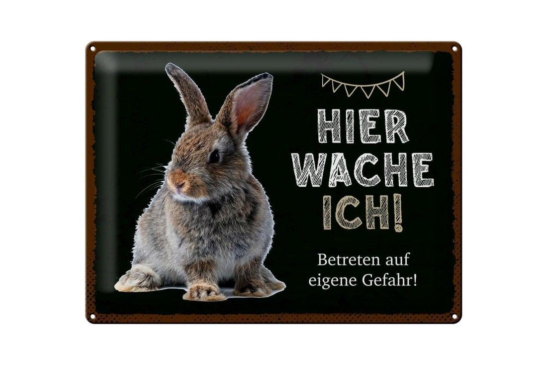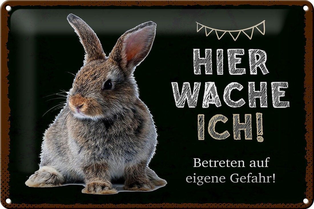 Blechschild Kaninchen hier wache ich, 4 verschied Größen, Blechschilder Spruch Hasen