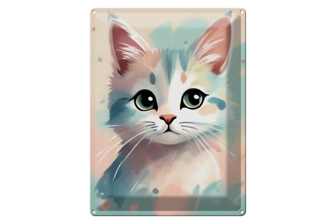 Blechschild Katze pastell, 3 verschied Größen Blechschilder Deko Katzen Farbspektakel