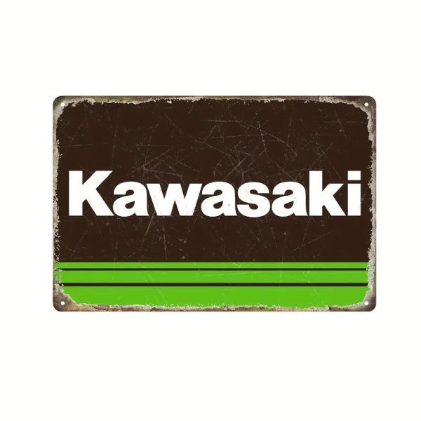 Blechschild Kawasaki 30x20 cm Das Blechschild besteht aus Aluminium. Dadurch ist es sehr stabil und nicht zu leicht. Es hat keine scharfen Kanten und die Ecken sind abgerundet. Es sind 4 Löcher zu Wandbefestigung vorgebohrt