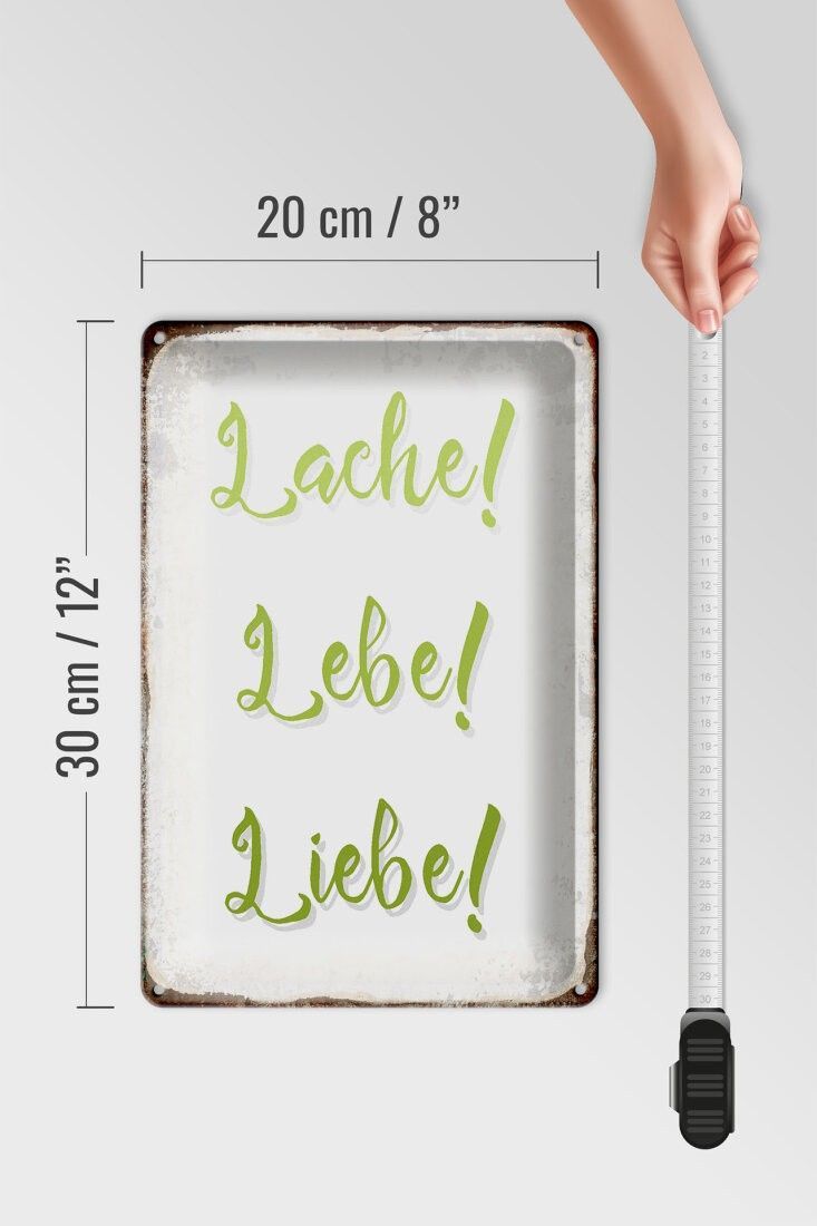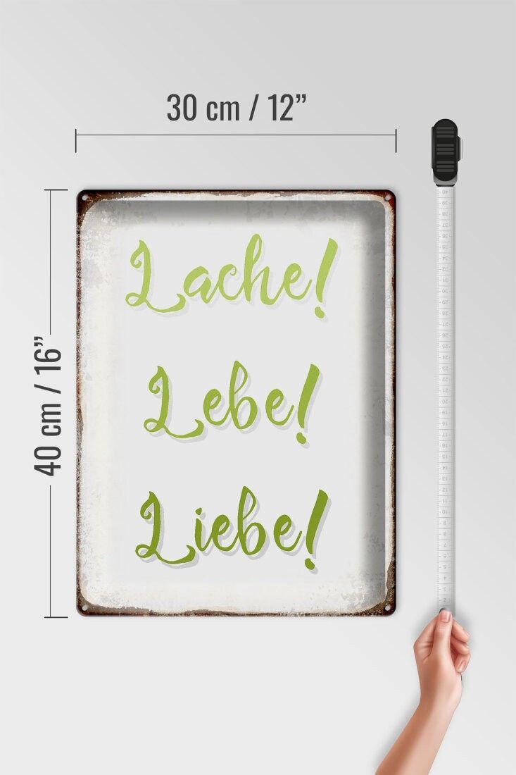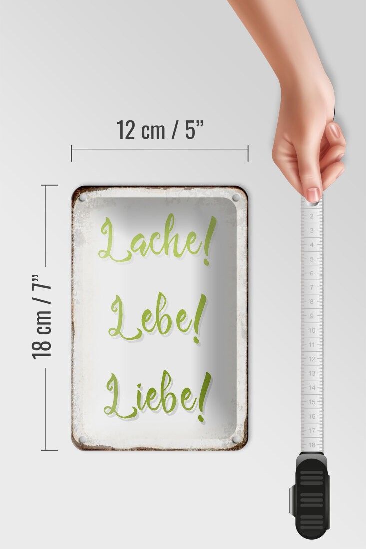 Blechschild lache lebe liebe Retro, 3 verschied. Größen, Deko Spruch