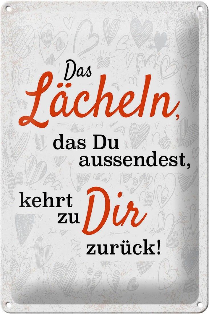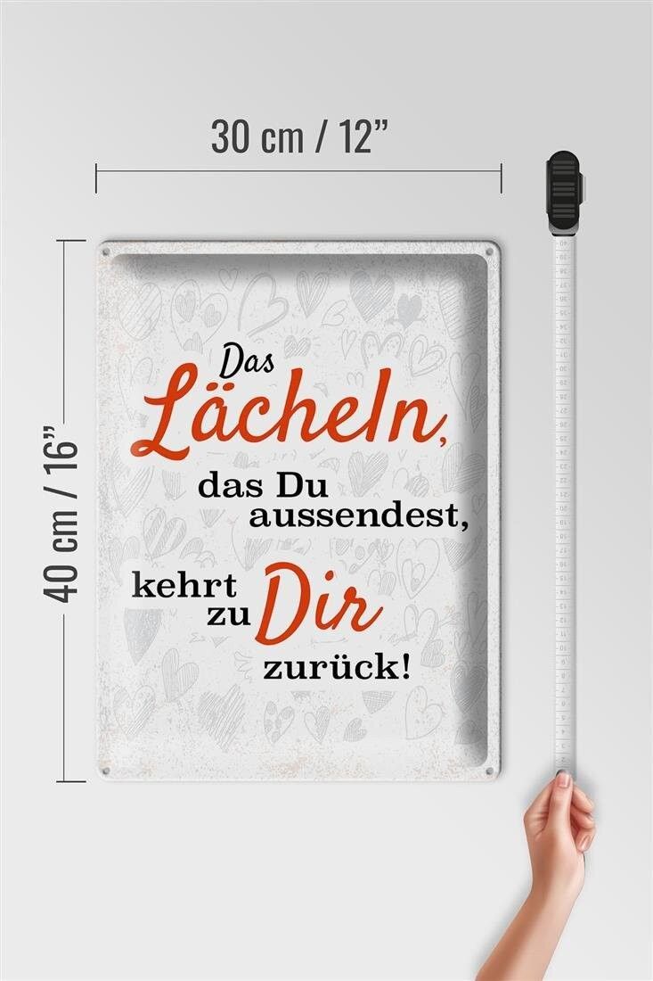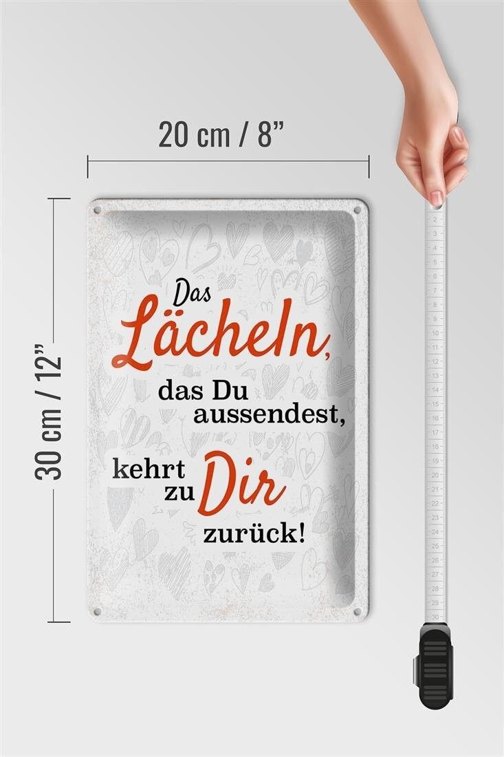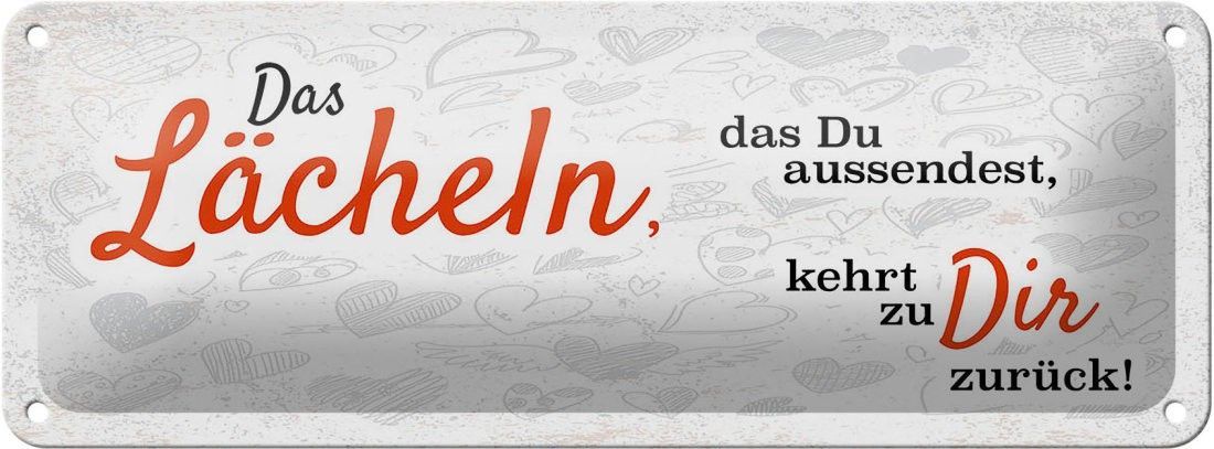 Blechschild Lächeln kommt zu DIR zurück, 4 verschied Größen, Spruch