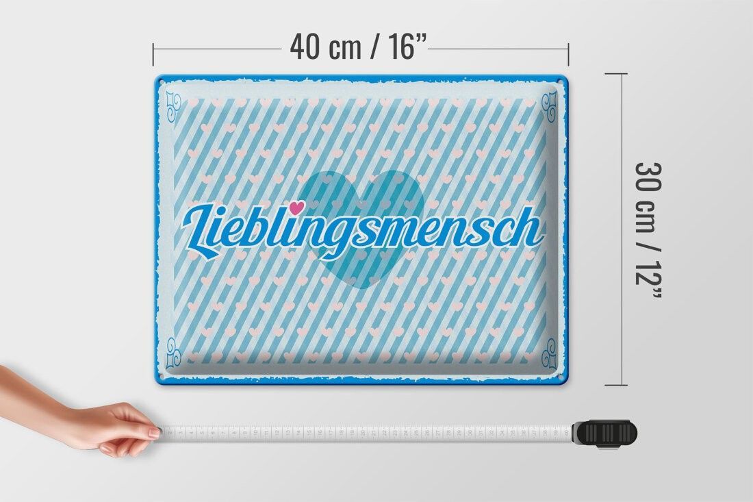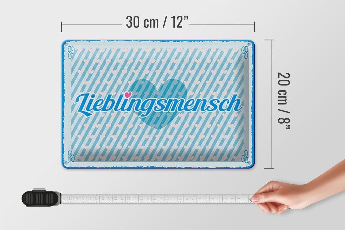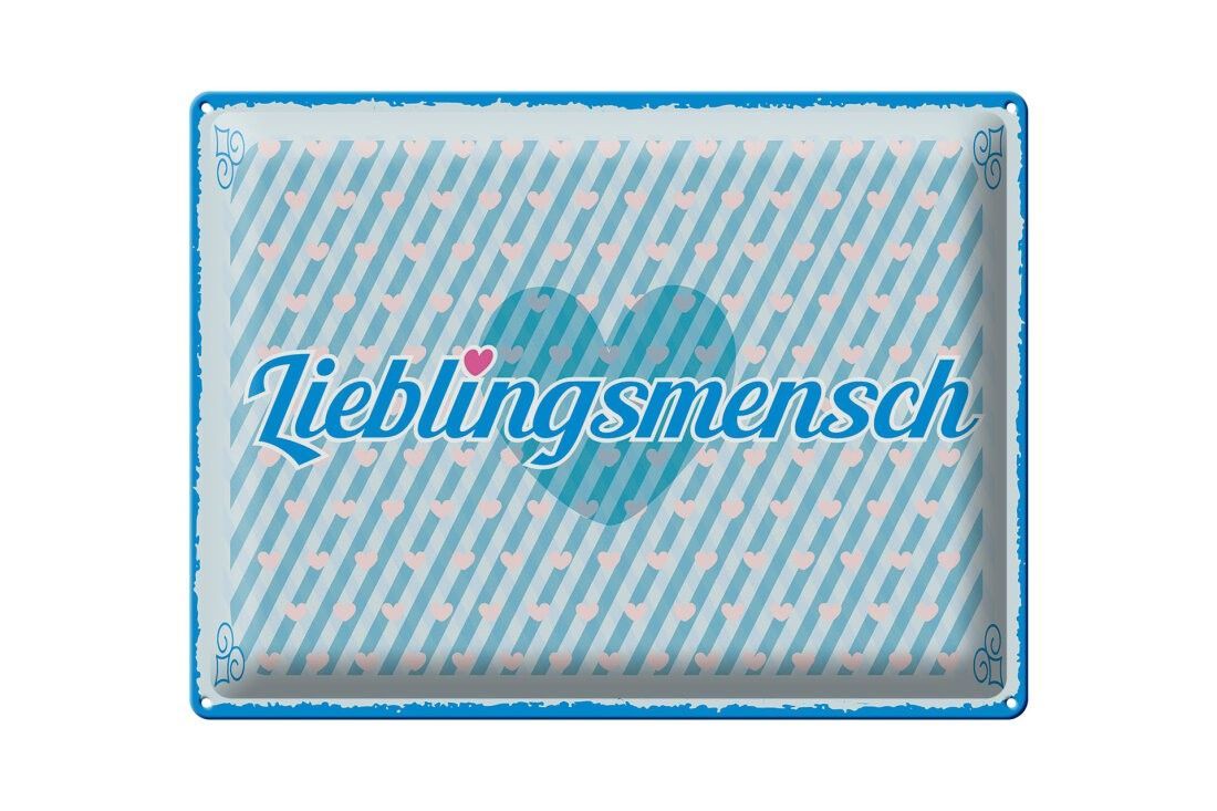 Blechschild Lieblingsmensch blaues Herz, 3 vers. Größen, Spruch