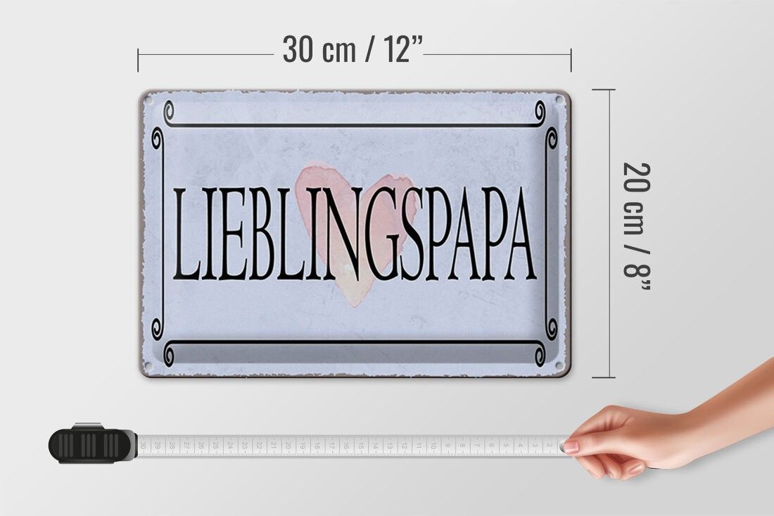 Blechschild Lieblingspapa Herz, 5 verschied Größen, Blechschilder Spruch Liebe
