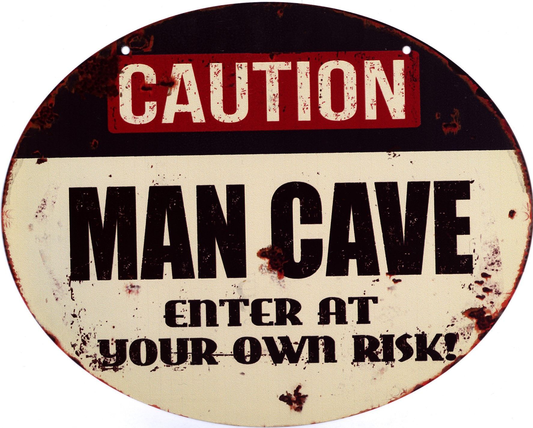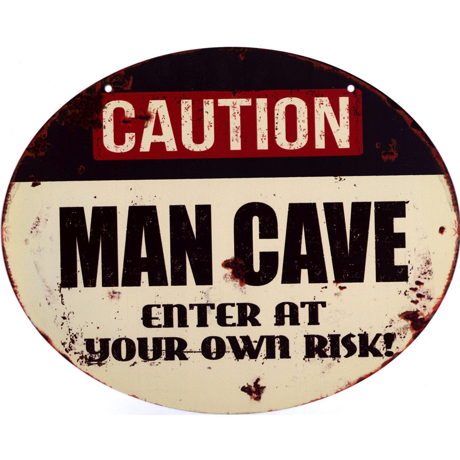 Blechschild Man Cave Zutritt Eigene Gefahr Deko Schild mit Aufschrift 20 x 25