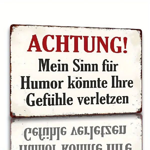 Blechschild Achtung Mein Sinn für Humor könnte Gefühle verletzen 30x20 cm Das Blechschild besteht aus Aluminium. Dadurch ist es sehr stabil und nicht zu leicht. Es hat keine scharfen Kanten und die Ecken sind abgerundet. Es sind 4 Löcher zu Wandbefestigung vorgebohrt