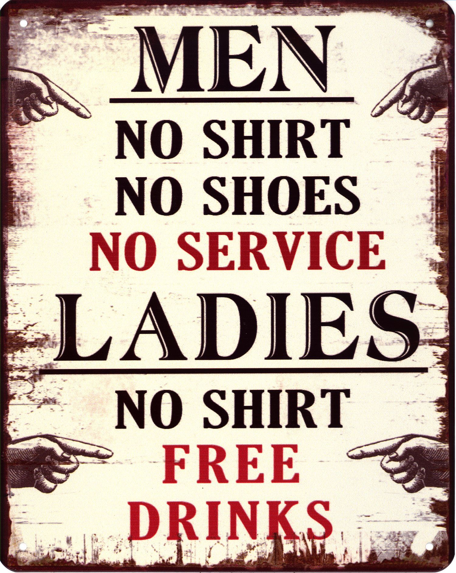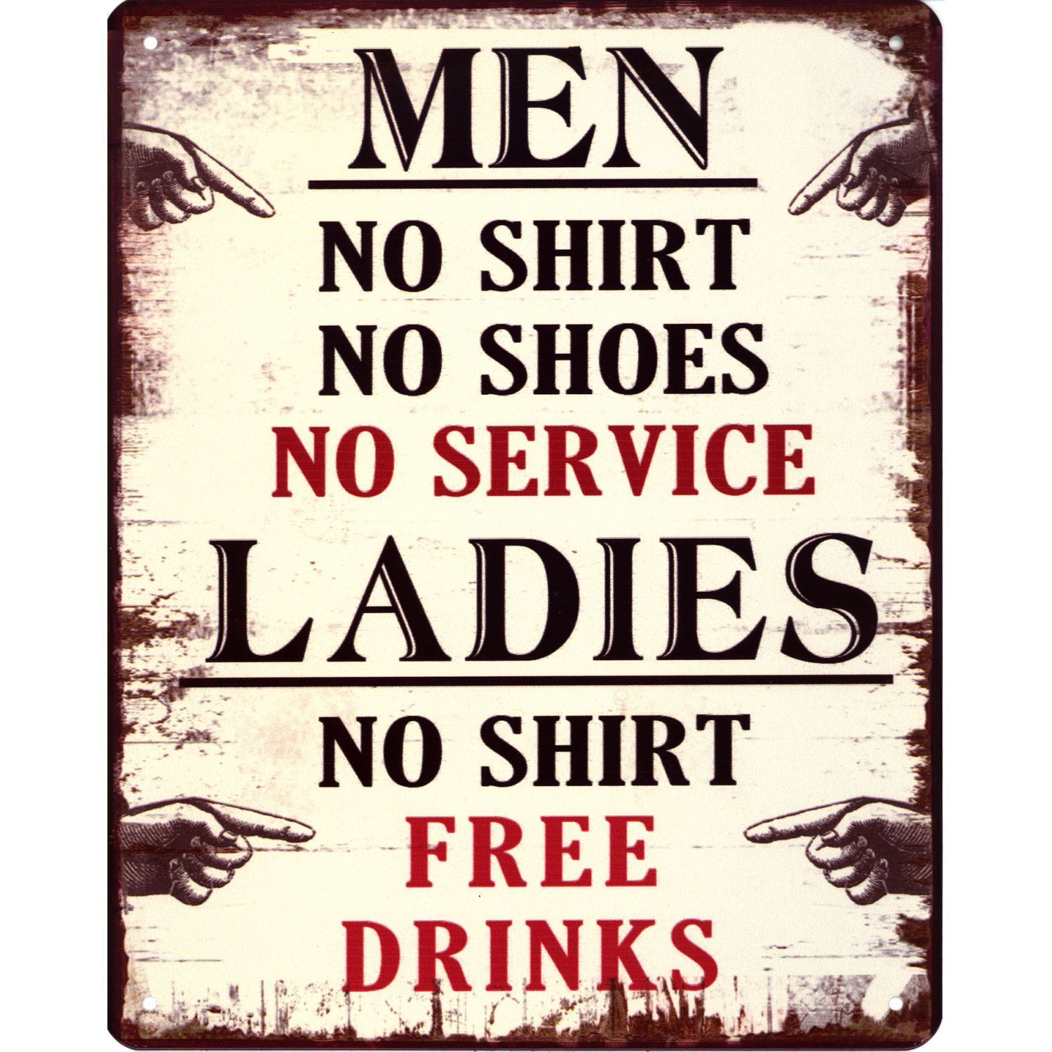 Blechschild Men Ladies no Shirt Deko Schild Aufschrift Dekoration Druck 20 x 25