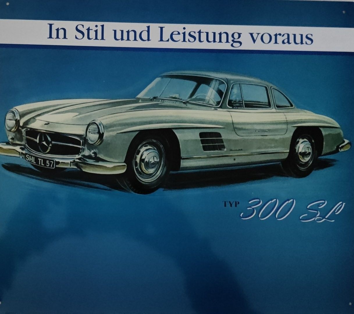 Mercedes 300 SL Blechschild 330 x 390 mm mit 4 Montagebohrungen an den Ecken Cromalinbeschichtetes Metall daher Lichtecht