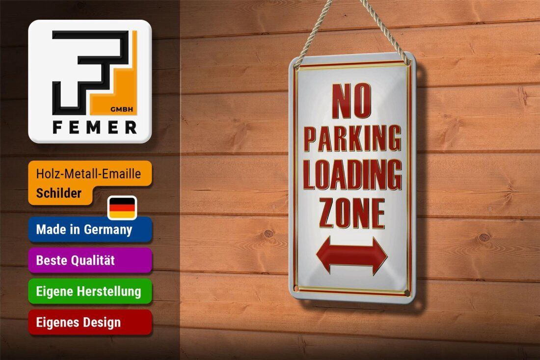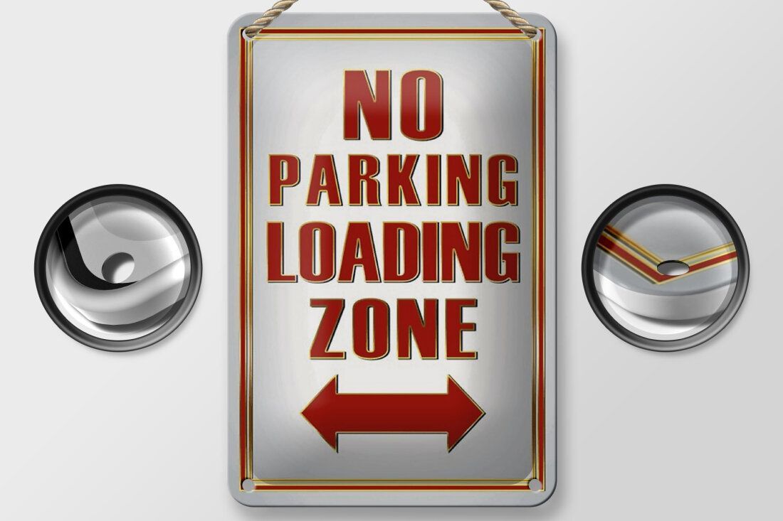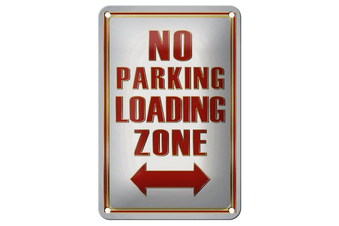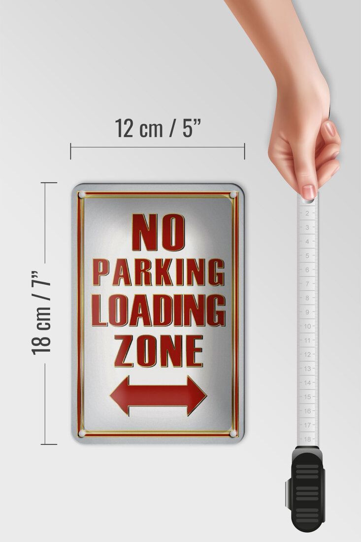 Blechschild No Parking loading Zone - 12x18 cm weiß rot gewölbt
