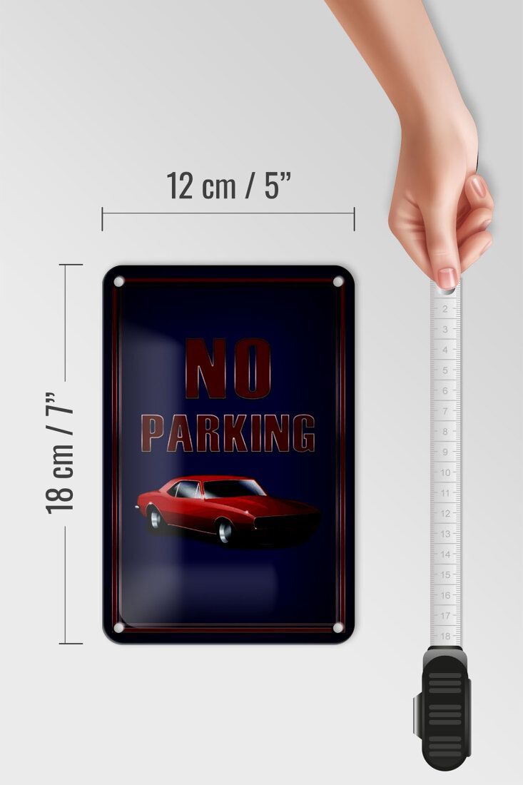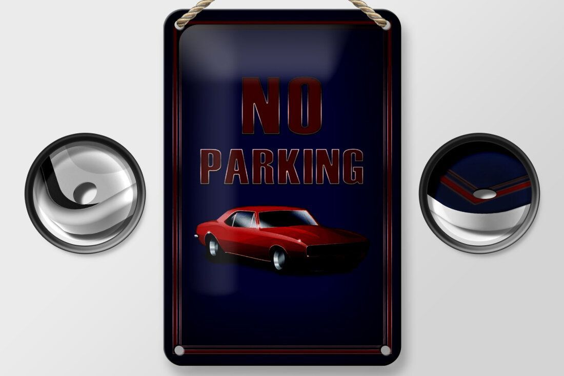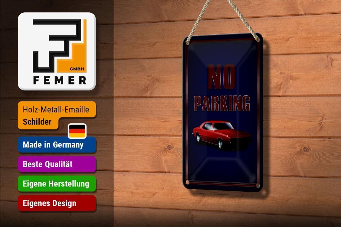 Blechschild No Parking - Vintage Design mit 1967 Chevrolet Camaro 18x12cm gewölbt