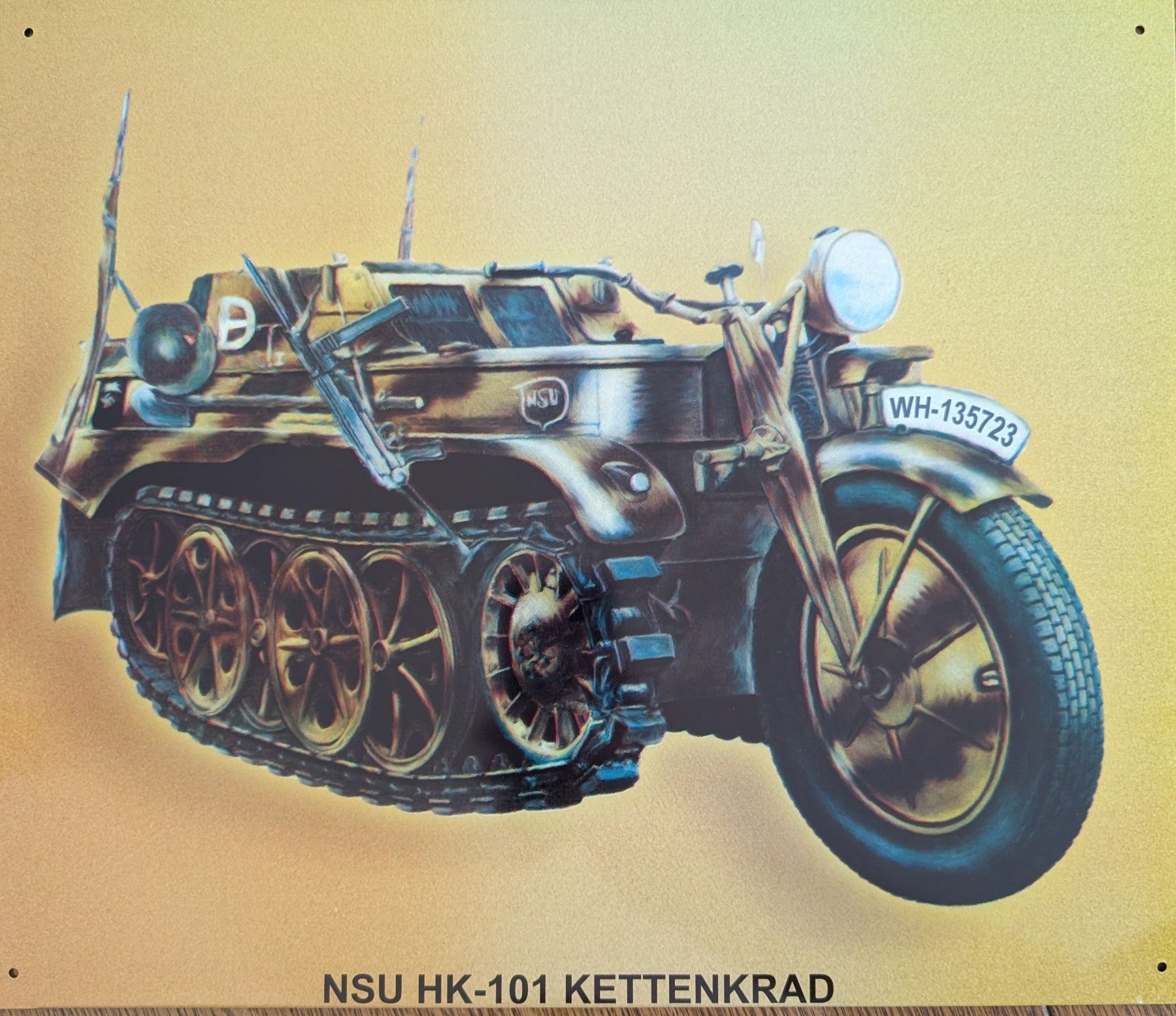 Blechschild NSU HK-101 Kettenkrad, Wehrmachtsfahrzeug, Oldtimer, Klassiker