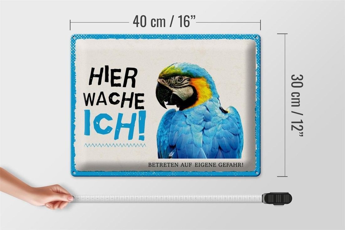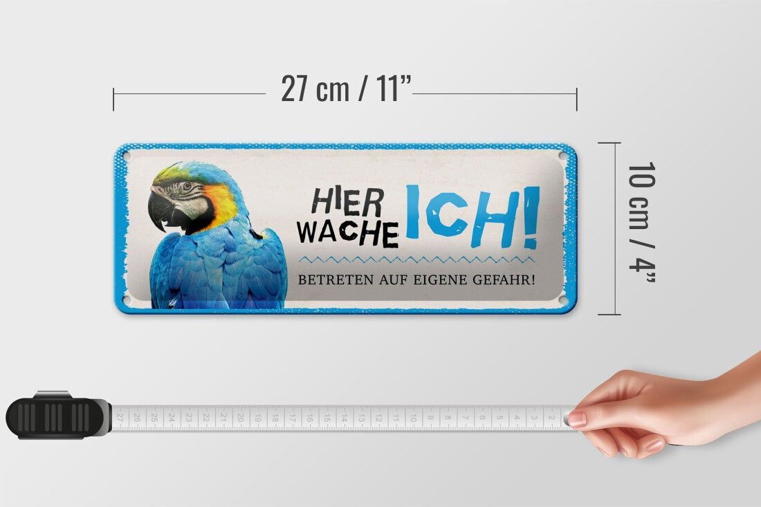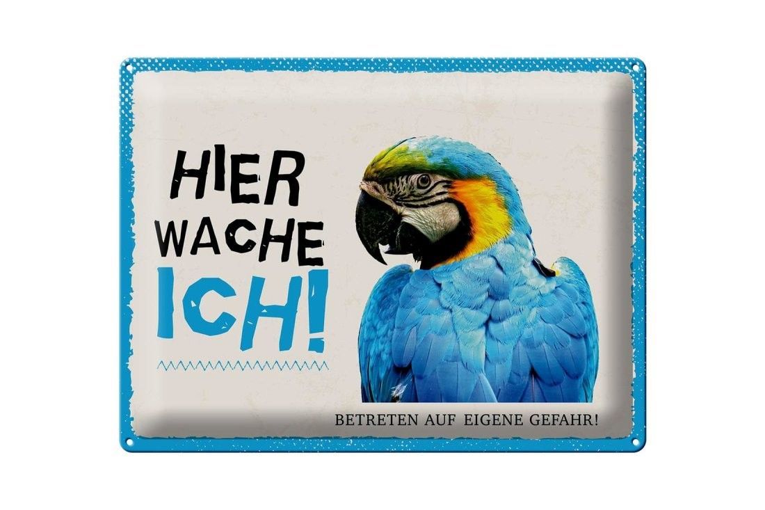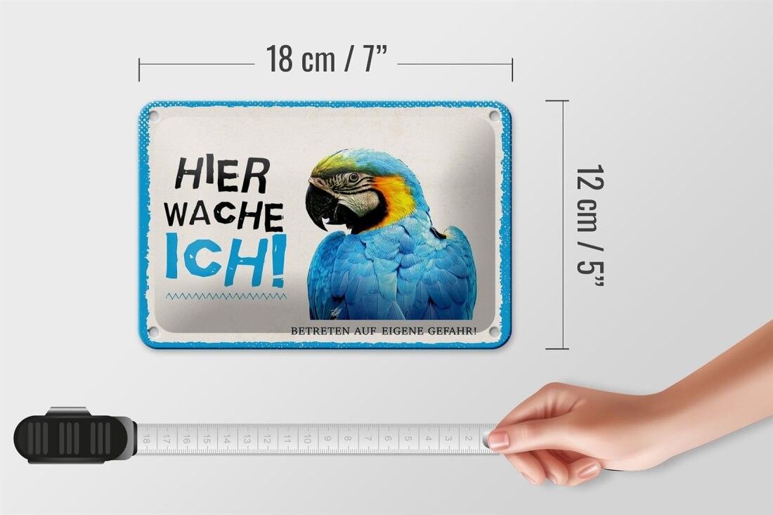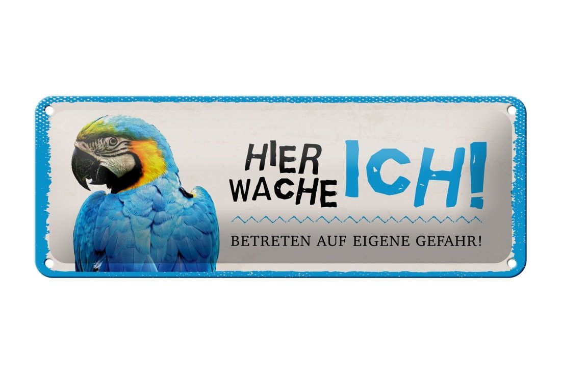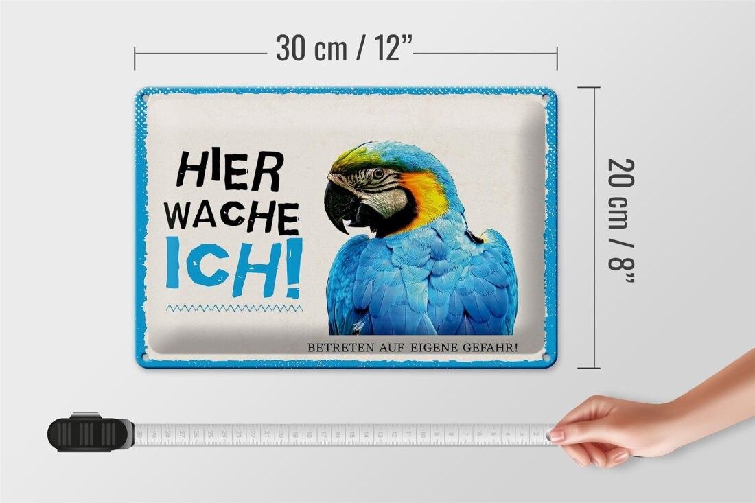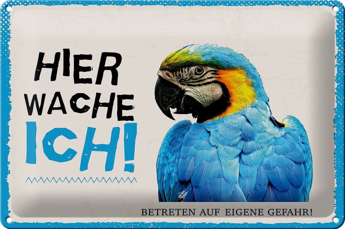 Blechschild Papagei hier wache ich, 4 verschied Größen, Blechschilder Spruch