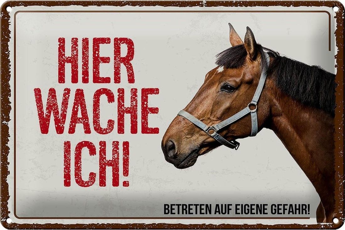 Blechschild Pferd hier wache ich, 4 verschied Größen, Blechschilder Spruch Ponny