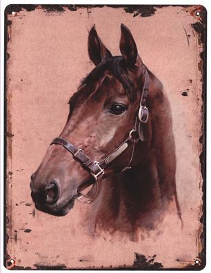 Blechschild Pferdekopf links Deko Schild Aufschrift Dekorations Aufdruck 25 x 33
