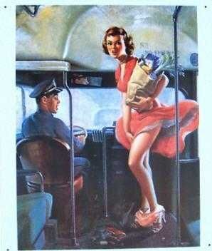 PIN UP im Bus Blechschild 330 mm x 390 mm mit 4 Montagebohrungen an den Ecken Chromalinbeschichtetes Metall daher Lichtecht