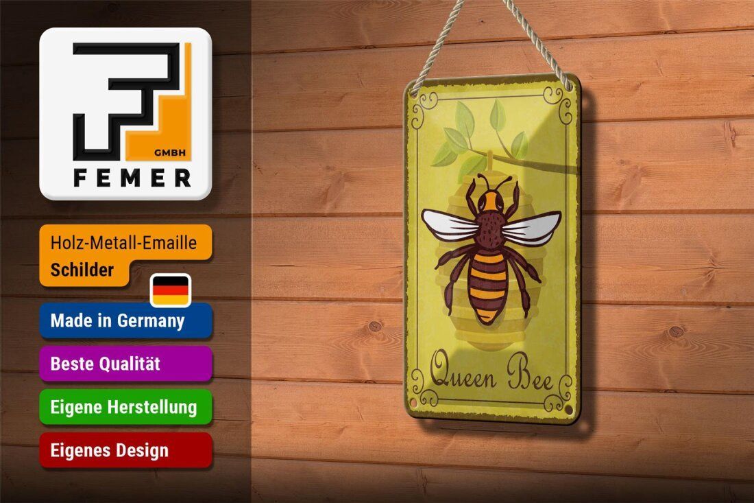 Blechschild Queen Bee Biene Honig Imkerei 12x18cm Gold-/Gelbton gewölbt