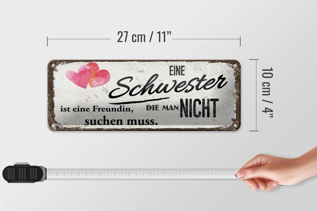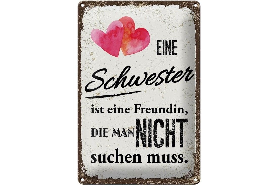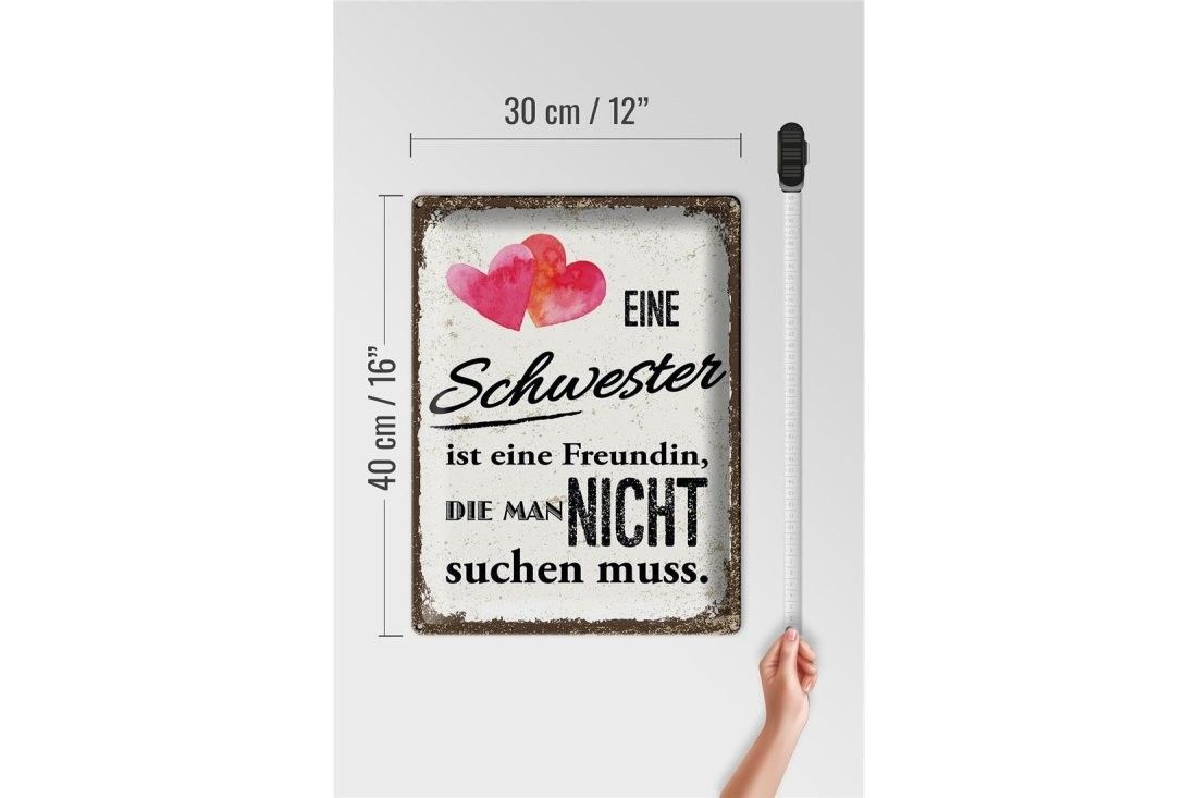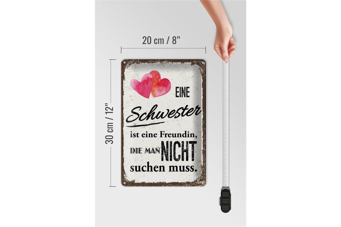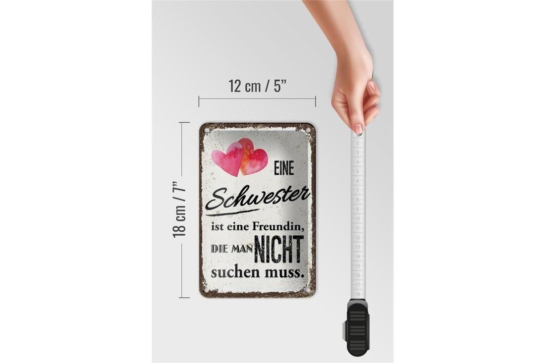 Blechschild Schwester ist eine Freundin Herz, 4 verschied Größen, Spruch, Familie