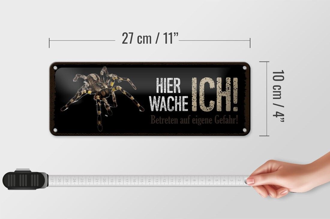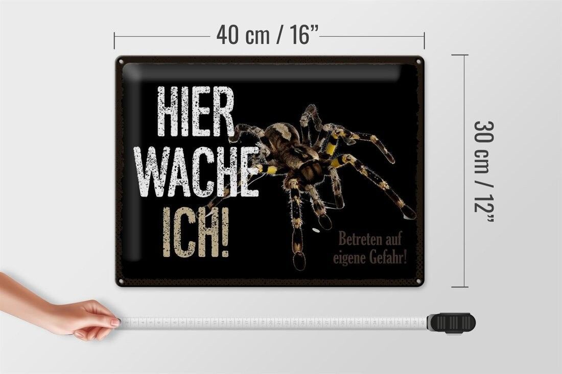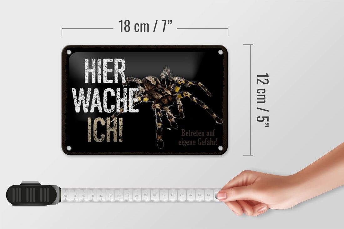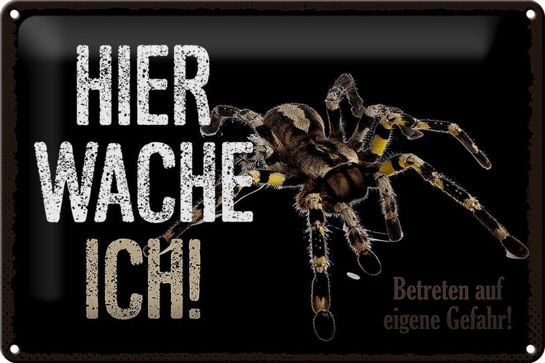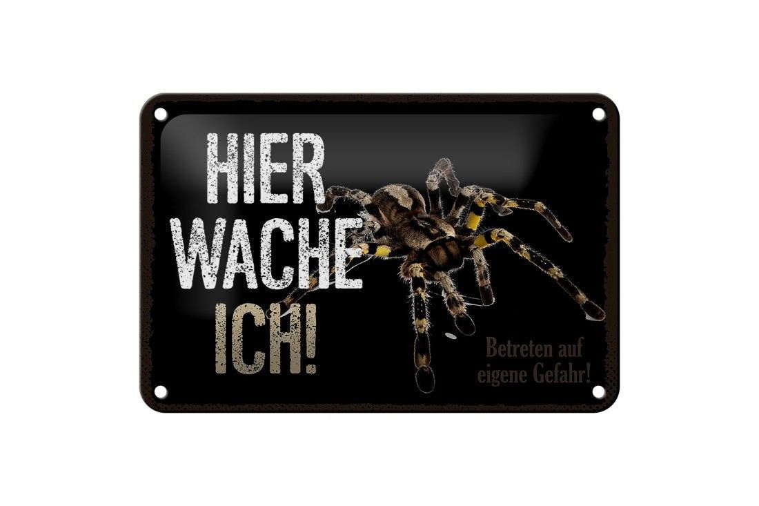 Blechschild Spinne hier wache ich, 4 verschied Größen, Blechschilder Spruch Spider