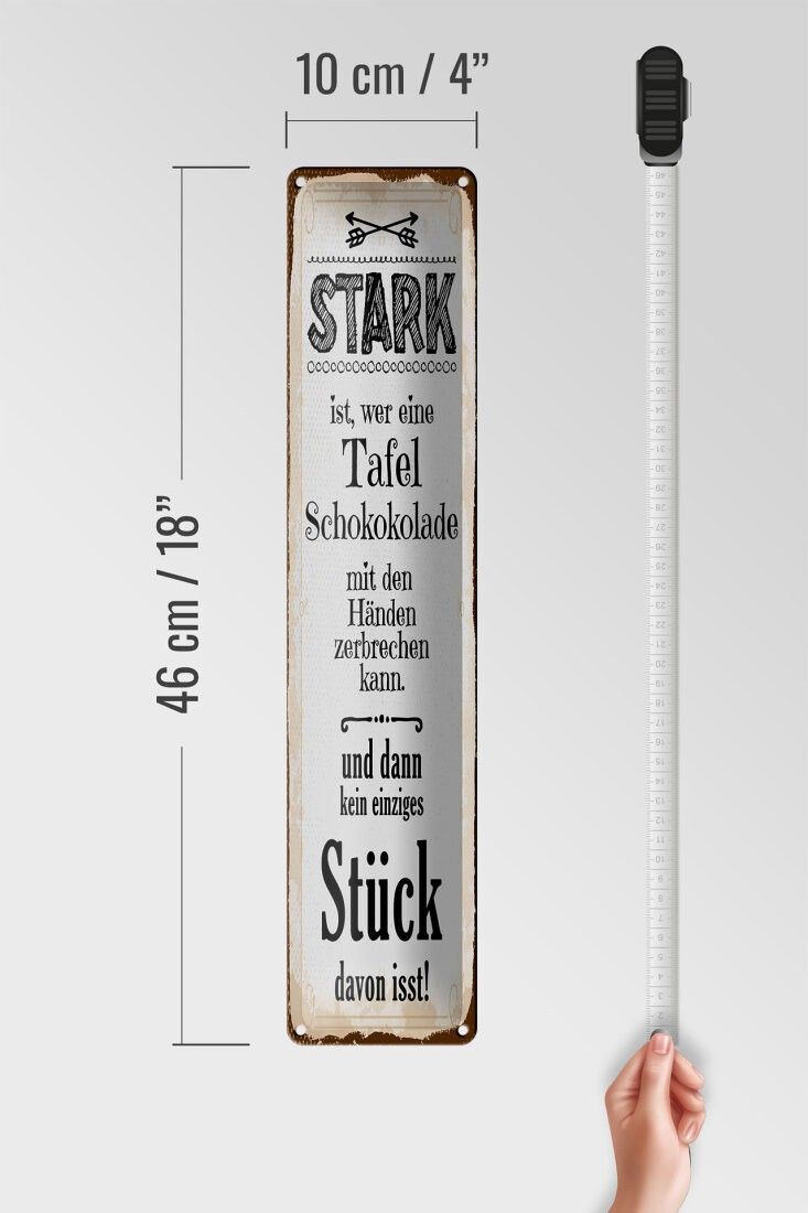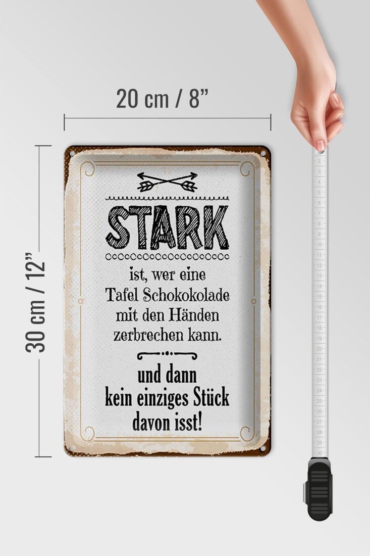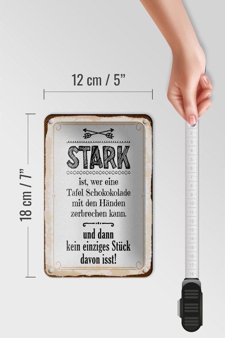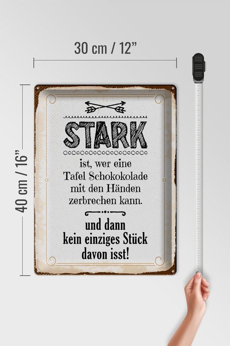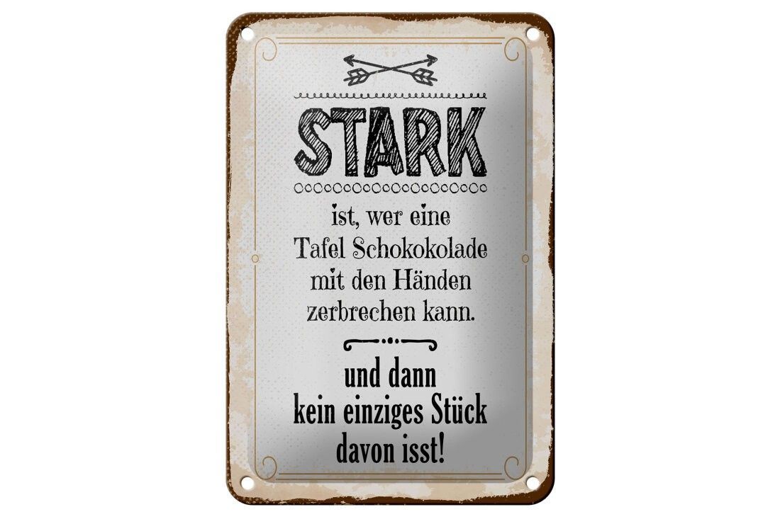 Blechschild Stark ist, wer eine Tafel Schokolade, 4 verschied Größen