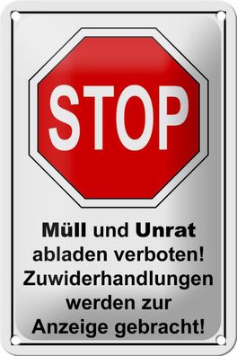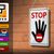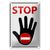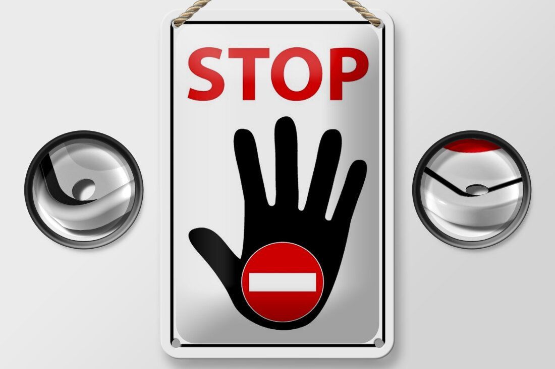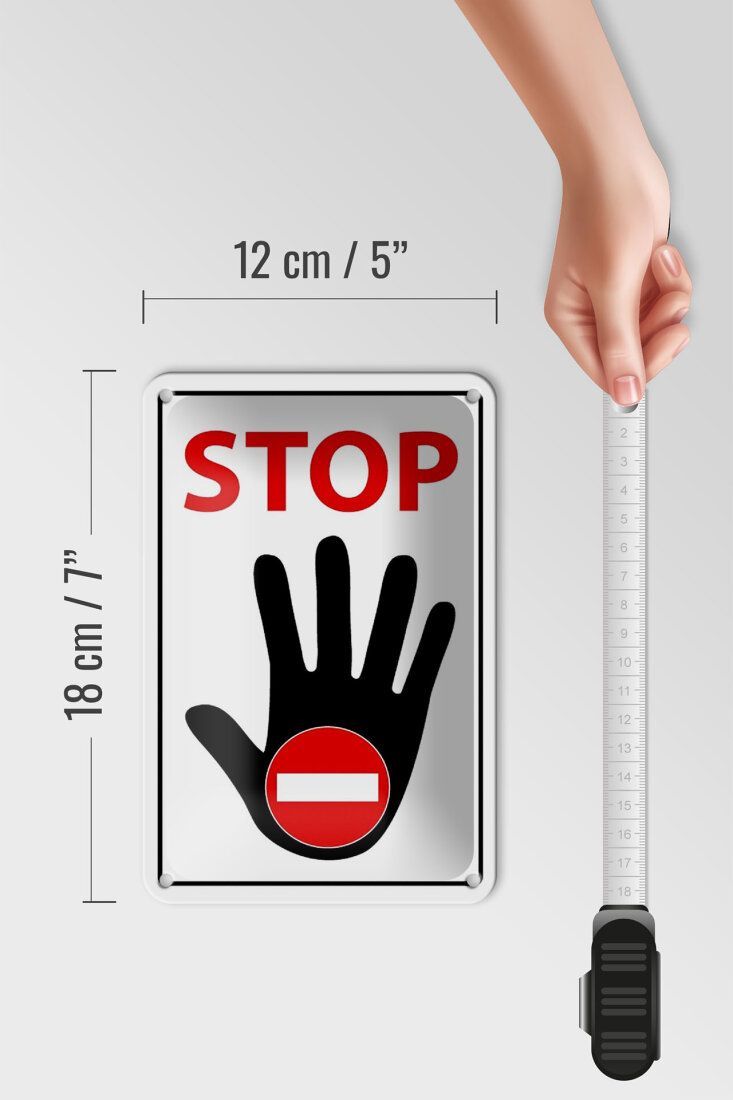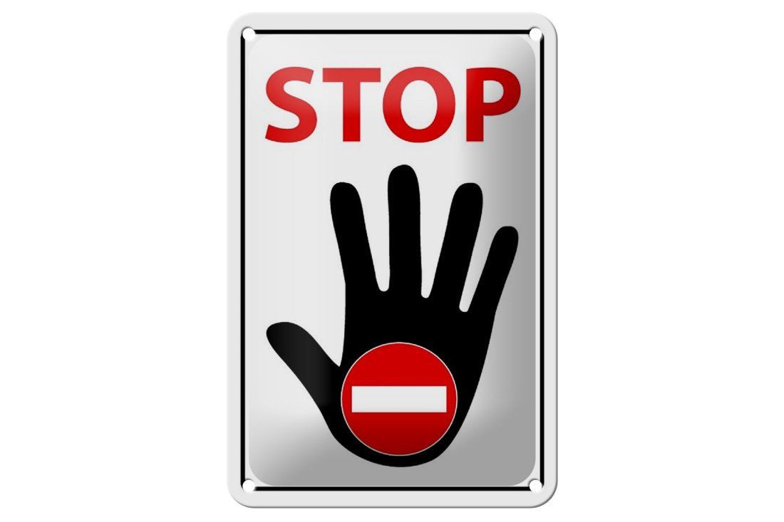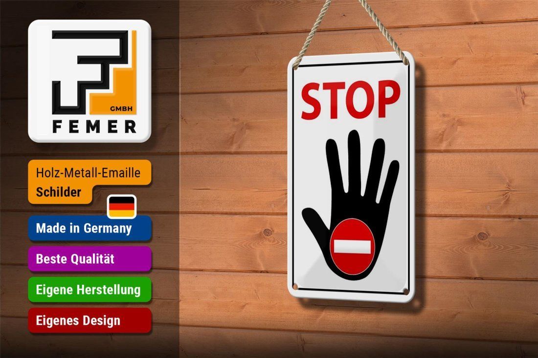 Blechschild "Stop" mit schwarzer Hand 18x12cm weiß gewölbt