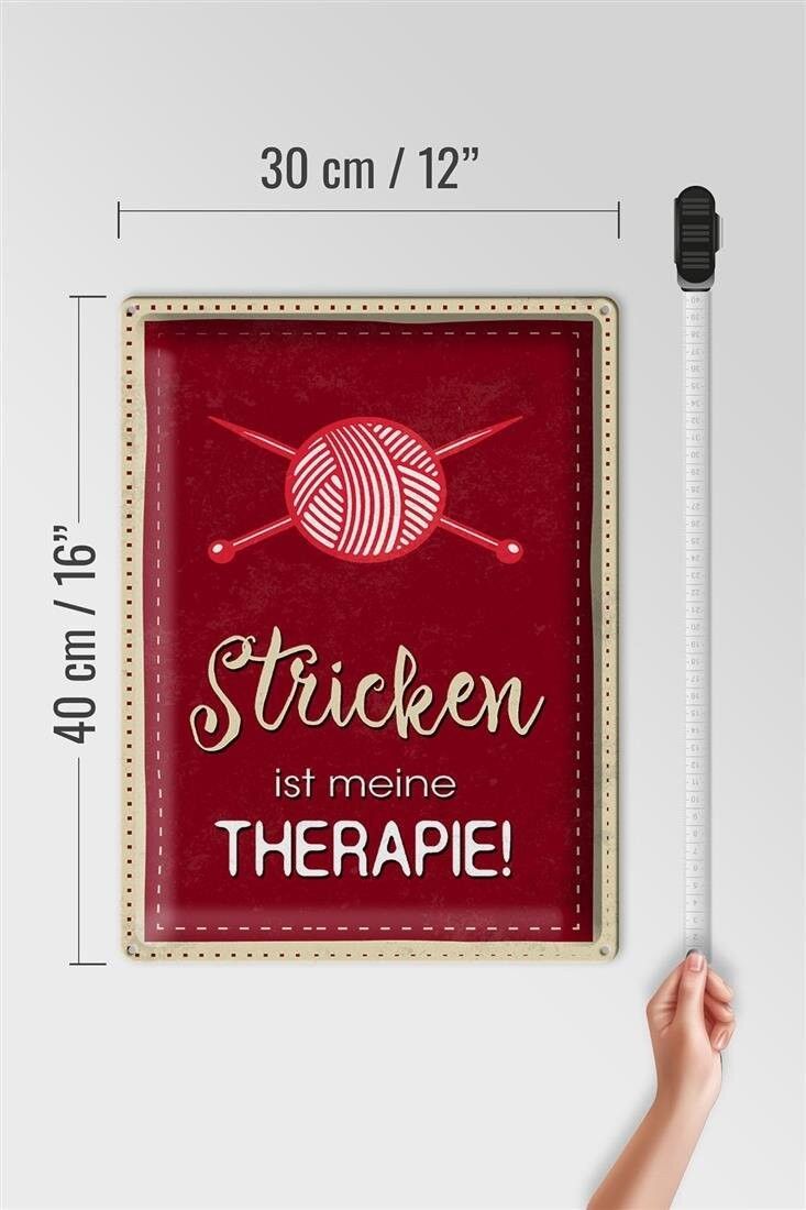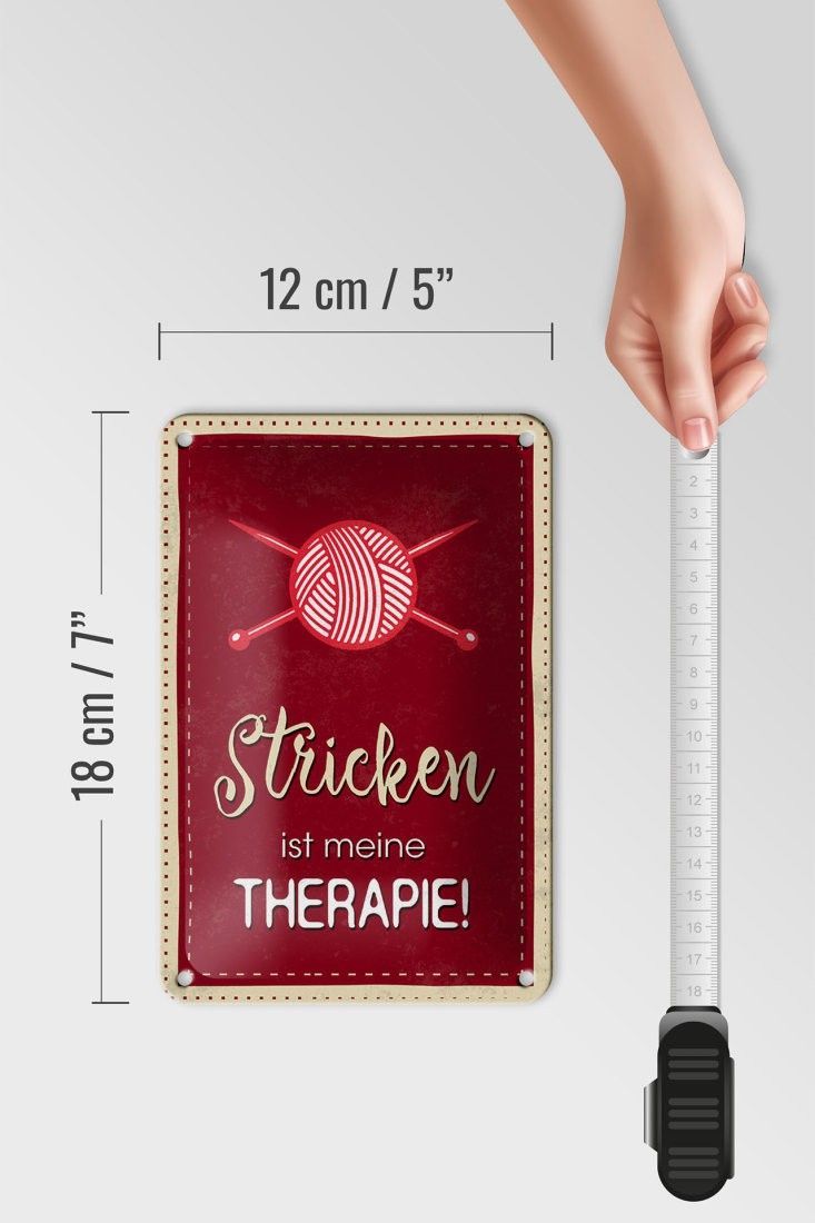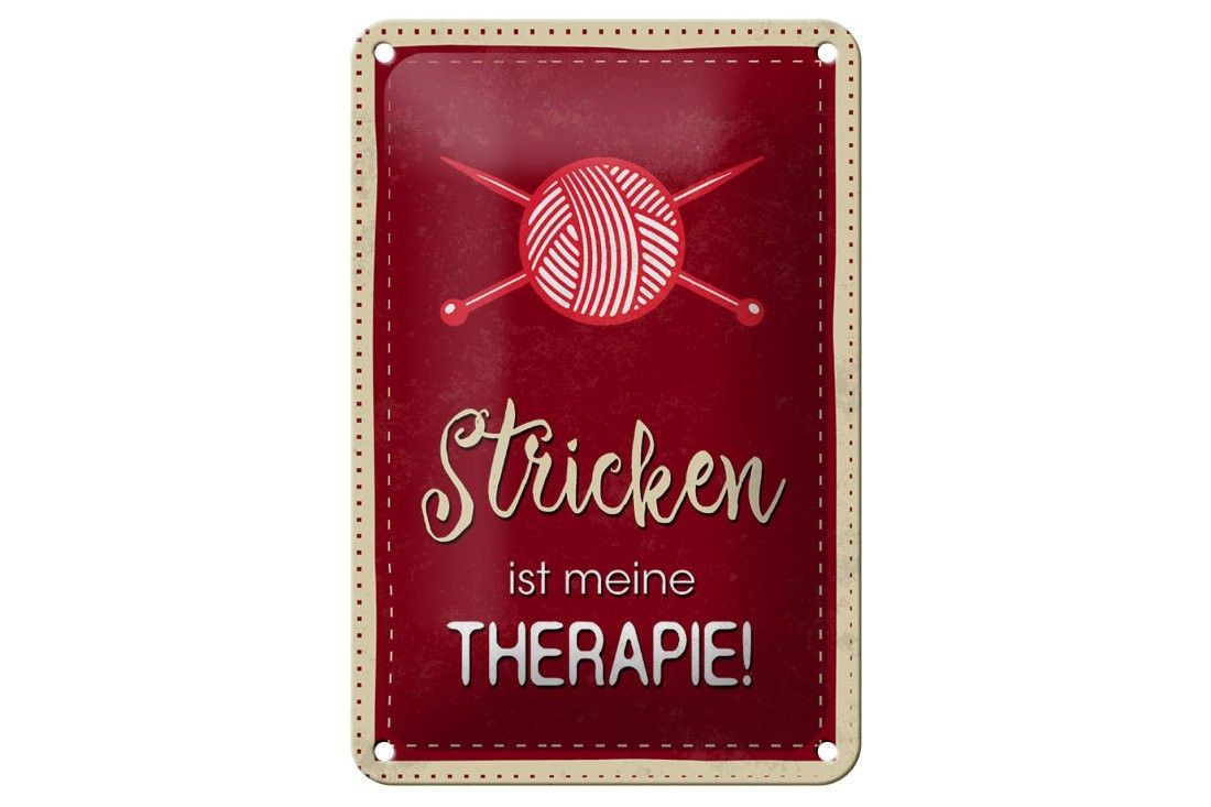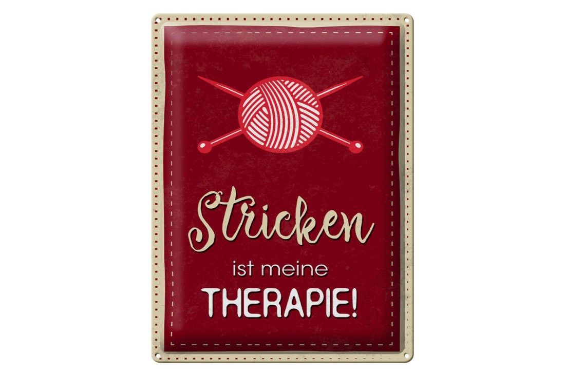 Blechschild Stricken ist meine Therapie, 3 verschied Größen Blechschilder