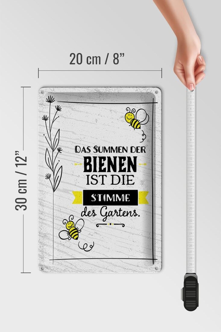 Blechschild Summen der Bienen ist Stimme des Gartens, 4 verschied. Größen