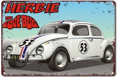 Blechschild Herbie VW Käfer The Love Bug Vintage Metallschild TEL3356