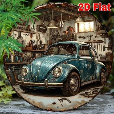 Blechschild rund VW Käfer in Garage Vintage Metallschild TE2613