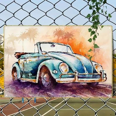 Blechschild VW Käfer Cabrio Volkswagen Vintage Metallschild TEL3215
