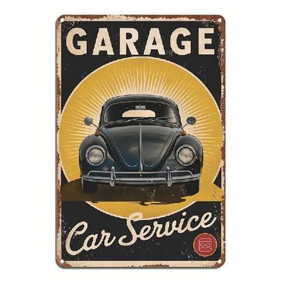 Blechschild Car Service Garage VW Käfer Vintage Metallschild TEL3179