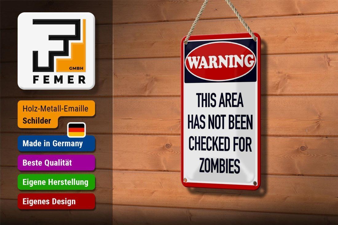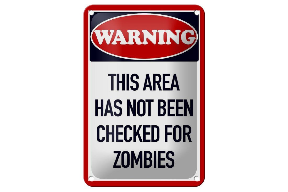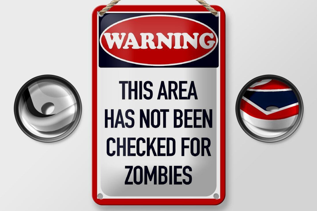 Blechschild "Warning - This Area has not been checked for Zombies" 12x18cm gewölbt