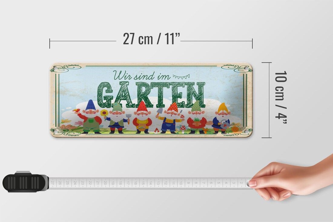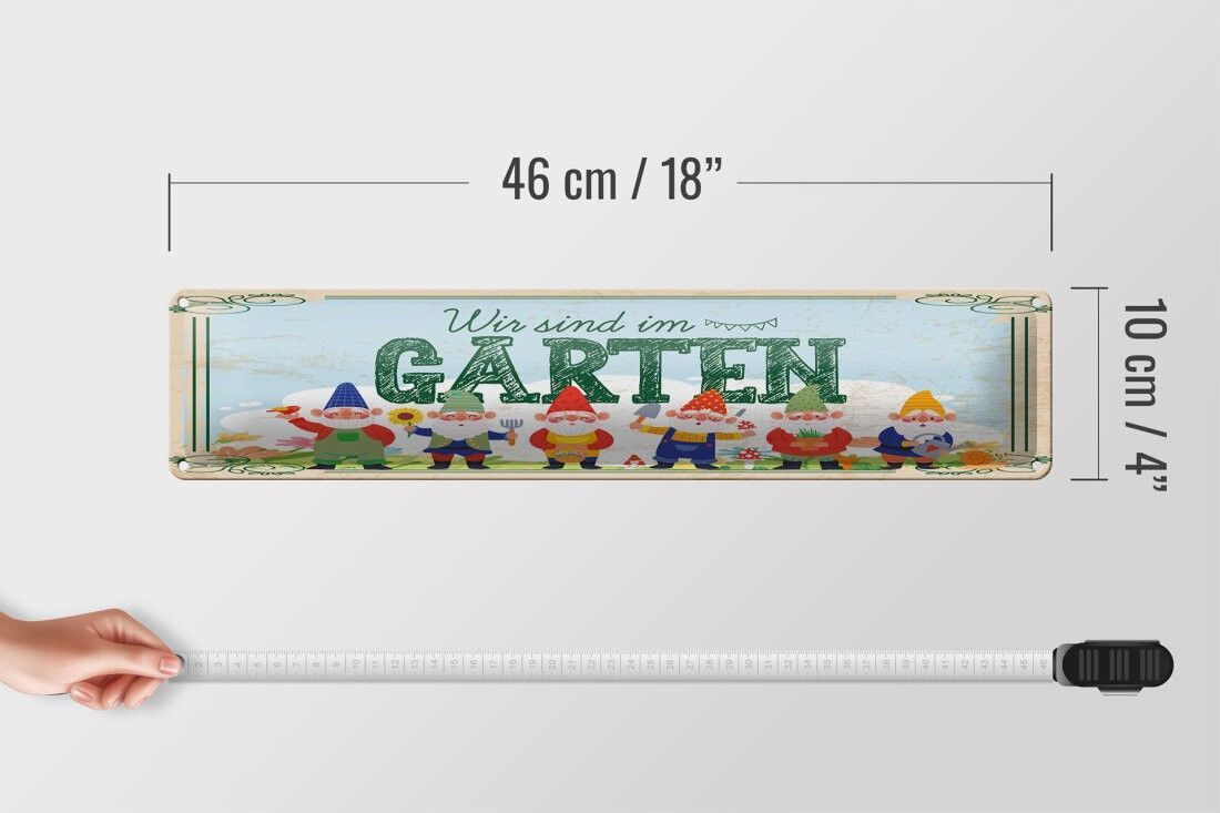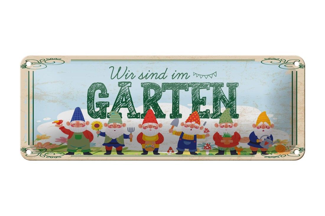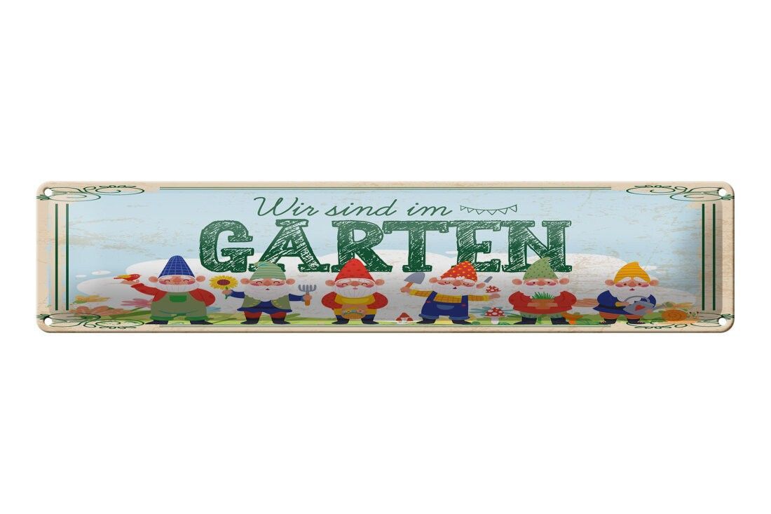 Blechschild Wir sind im Garten Gartenzwerge, 5 verschied Größen, Spruch