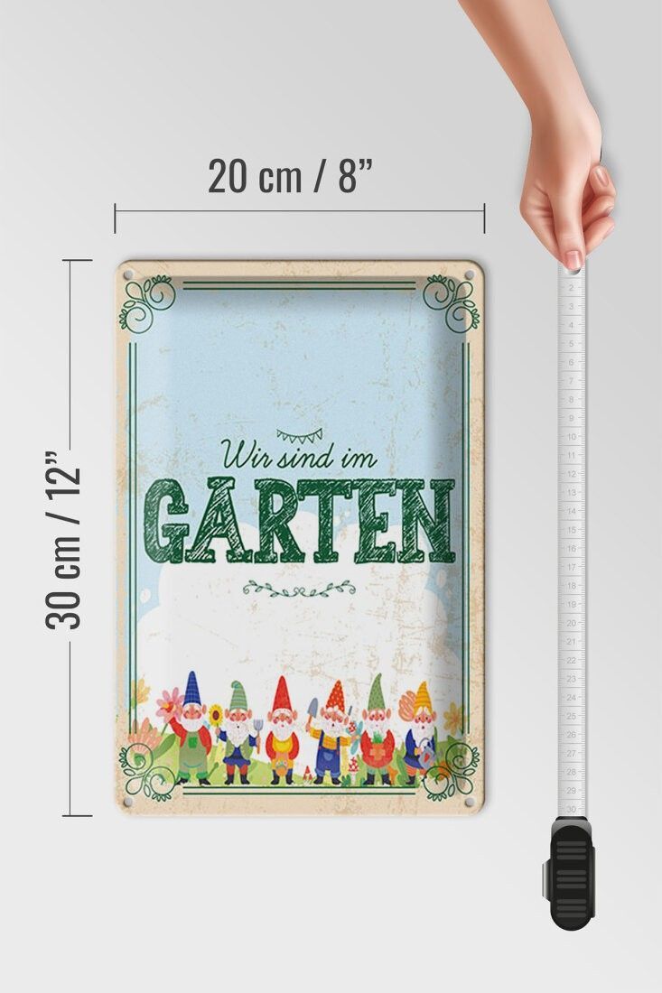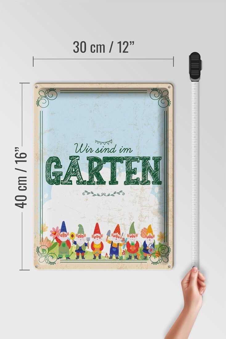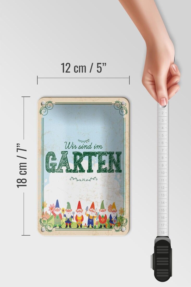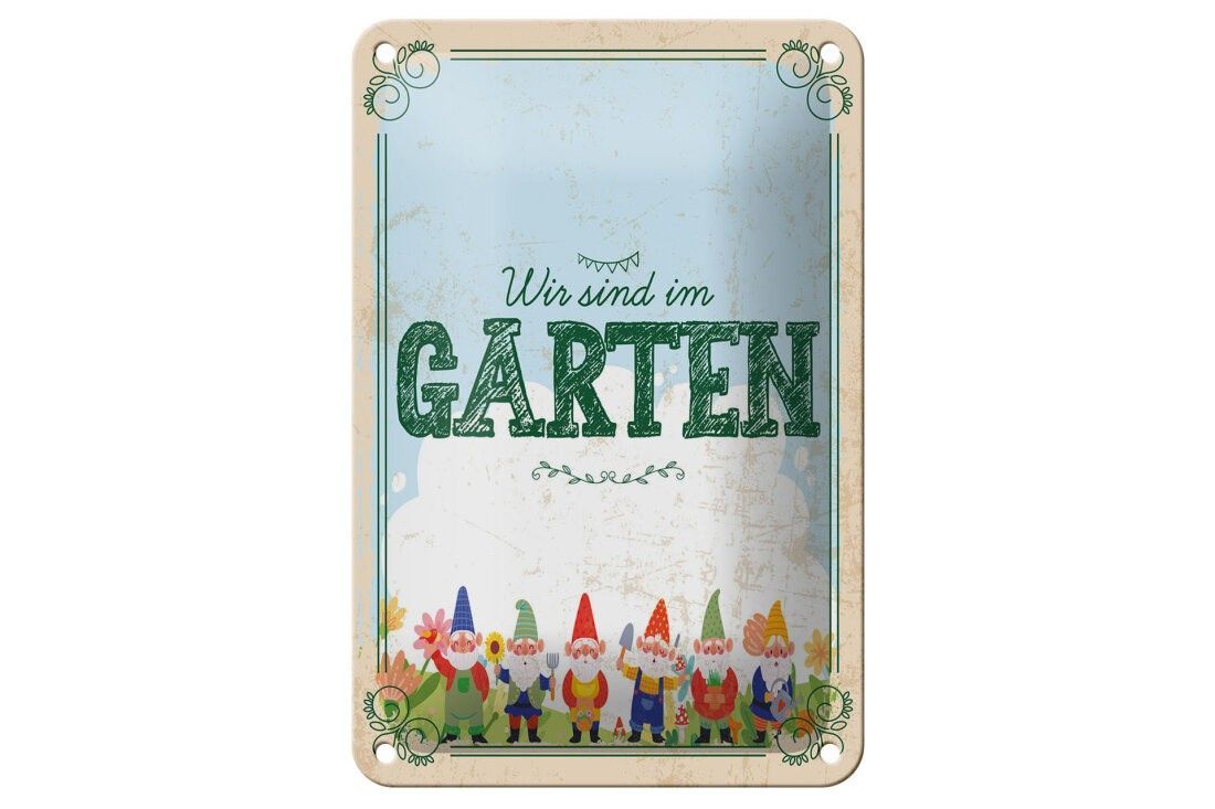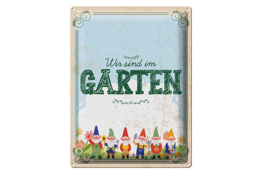 Blechschild Wir sind im Garten Gartenzwerge, 5 verschied Größen, Spruch