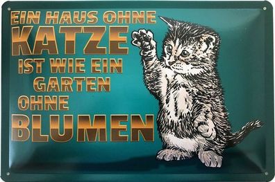 • Blechschild 30 X 20 cm Ein Haus ohne Katze ist wie ein Garten ohne Blumen