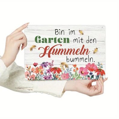 • Blechschild Bin im Garten mit den Hummeln bummeln 30x20cm TE948