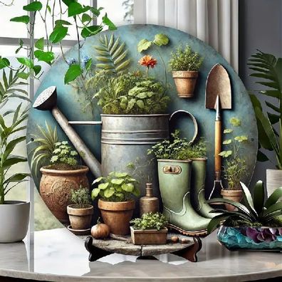 • Blechschild rund Garten Gießkanne Gummistiefel Durchmesser 20cm TE1555