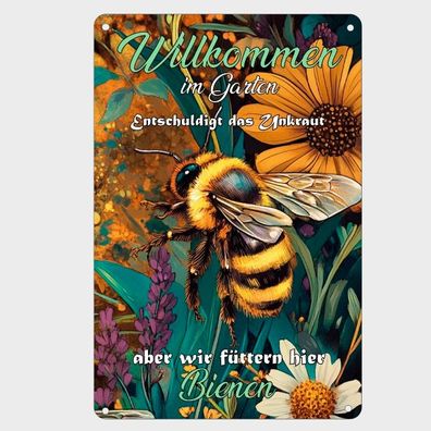 • Blechschild Willkommen im Garten Bienen Nostalgie Retro Vintage TEL1765