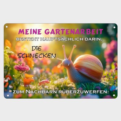 • Blechschild Garten Gartenarbeit Schnecken zum Nachbarn TEL1767