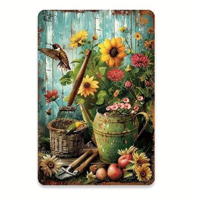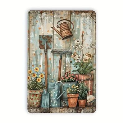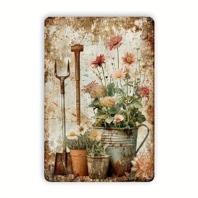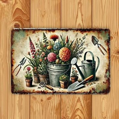 • Blechschild Garten Schaufel Gießkanne Blumen Vintage Metallschild TEL3056