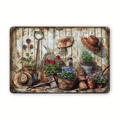 • Blechschild Garten Gartengeräte Blumen Nostalgie Vintage Metallschild TEL2318