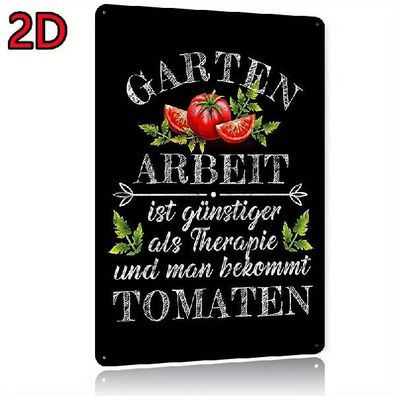 • Blechschild Garten Gartenarbeit Therapie Tomaten Vintage Metallschild TEL2437