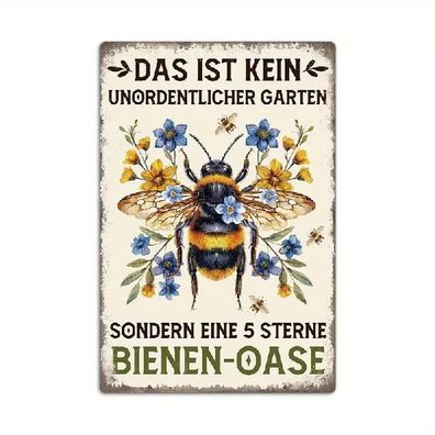 • Blechschild kein unordentlicher Garten Bienen Oase Metallschild TEL2588