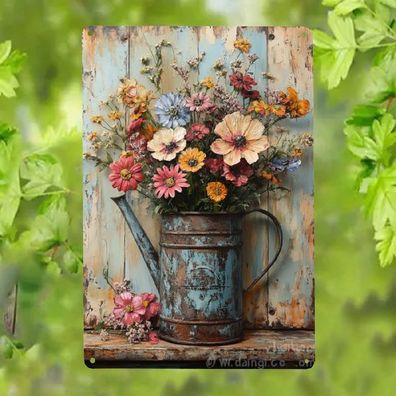 • Blechschild Gießkanne Kanne mit Blumen Garten Vintage Metallschild TEL2614