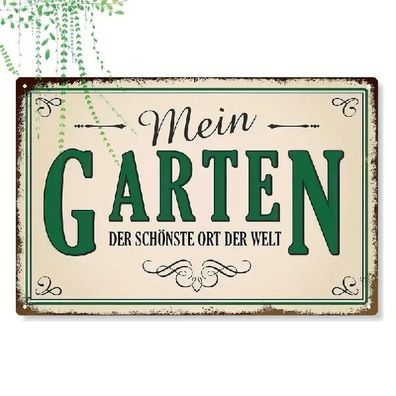 • Blechschild Mein Garten Schönster Ort der Welt Vintage Stil Metallschild TEL2762