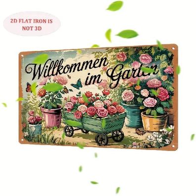 • Blechschild Willkommen im Garten Blumen Rosen Metallschild TEL2894