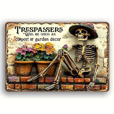 • Blechschild Eindringlinge werden als Kompost / Garten-Deko Metallschild TEL2959