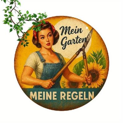 • Blechschild rund Mein Garten Meine Regeln Metallschild TE2987