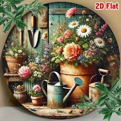• Blechschild rund Garten Gartenwerkzeug Blumen Gießkanne Metallschild TE3059