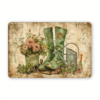 • Blechschild Garten Stiefel Gießkanne Blumen Vintage Metallschild TEL3058