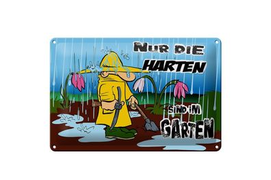 • Blechschild nur die Harten sind im Garten, 3 verschied Größen, Spruch