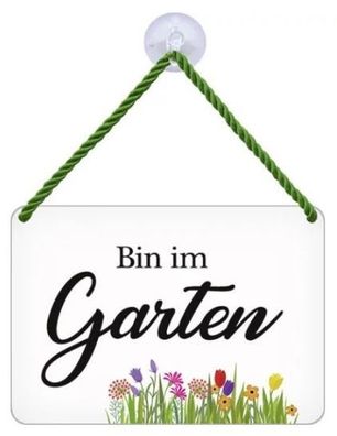 • Blechschild mit Kordel 17 x 12 cm Bin im Garten